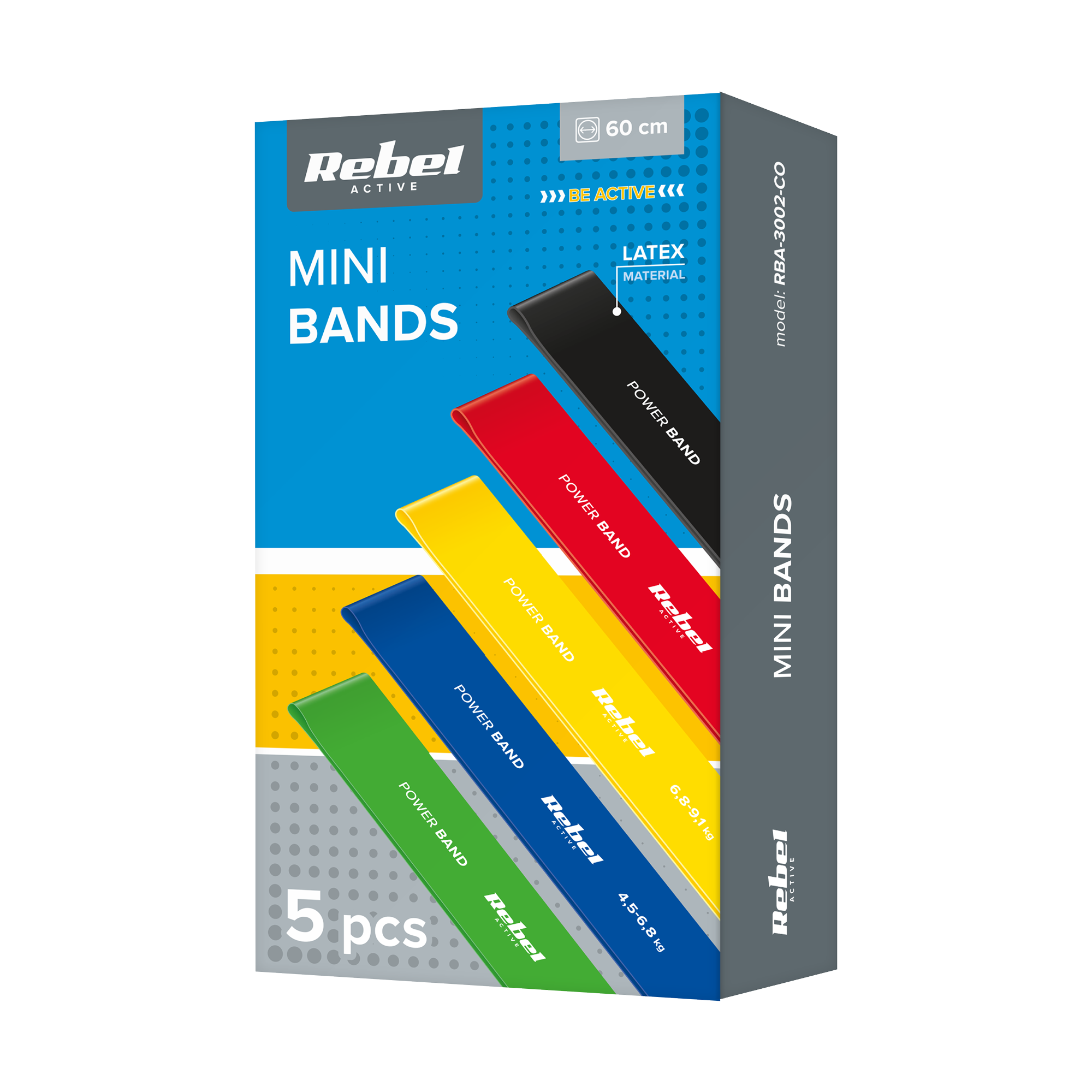 Riešutai latekso pratybų rinkinys - mini Band L, 2.3-18.2 kg, 5 Rubber, spalvos, RBEL ACTIVE