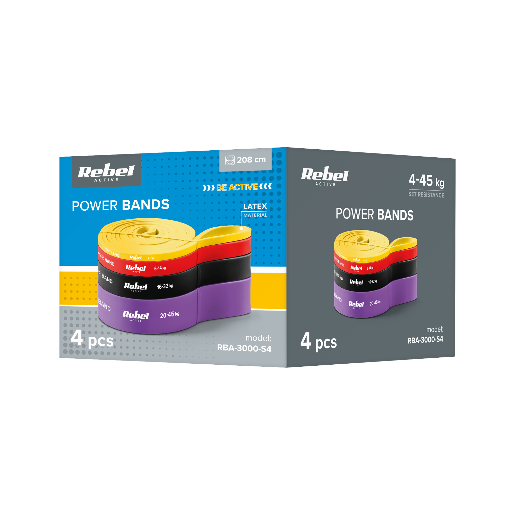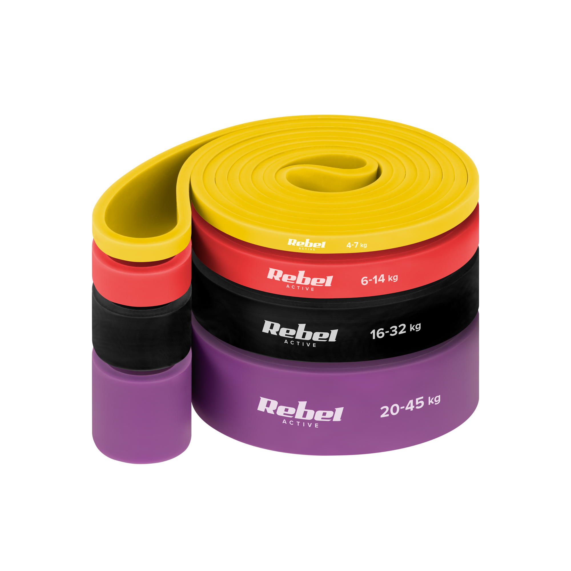 Latex pratybų gumos rinkinys - Power Band PLs2, 4-45 kg, 4 gumos, REBEL ACTIVE
