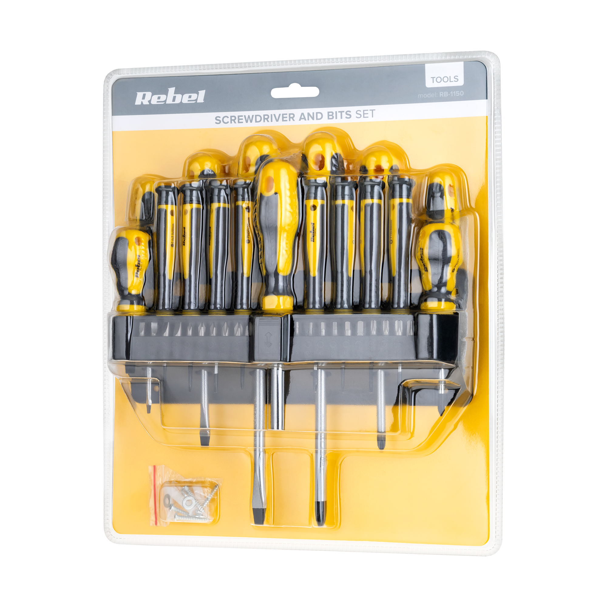 Magnetiniai patarimai Ergonomiška rankena Pagamintas iš chromo vanadžio plieno Plastikinis stovas apima: Flat 1.2 x 6,5 x 38 mm 1.0 x 5.5 x 75 mm 1.2 x 6.5 x 100 mm 1.2 x 8.0 x 150 mm Starry 2 x 38 mm 1 x 75 mm 2 x 100 mm 3 x 150 mm Precision Flats 0,4 x 2,0 x 50 mm Flats 0,4 x 2,5 x 50 mm Flats 0.5 x 50 mm Starry 00 x 50 mm 0 x 50 mm Torx T6 x 50 mm T8 x 50 mm Torx T10 x 50 mm