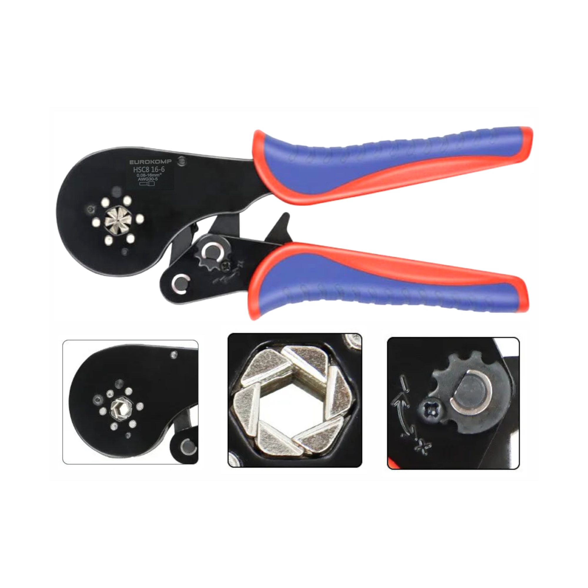 W oferowanym modelu tulejka jest zaciskana z sześciu stron co sprawia że jest bardzo mocno osadzona na przewodzie. Dodatkowym atutem takiego rozwiązania jest kształt zaciśniętej tulejki który jest zbliżony do koła przez co dużo łatwiej wsadzić taki zaciśnięty przewód do gniazda.